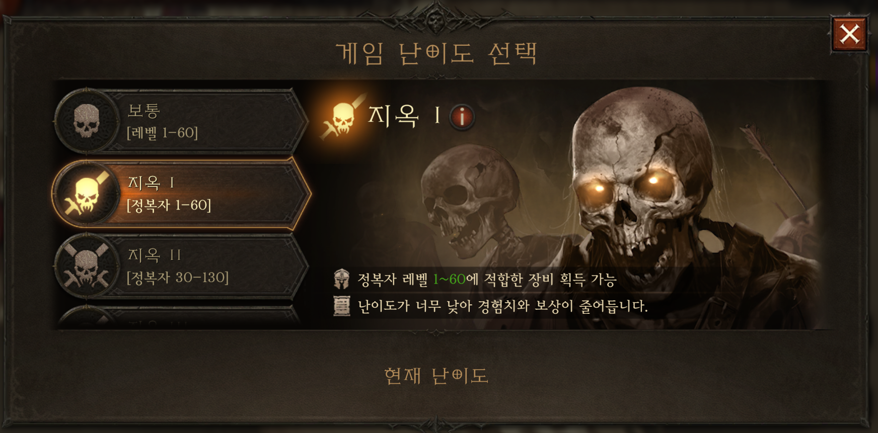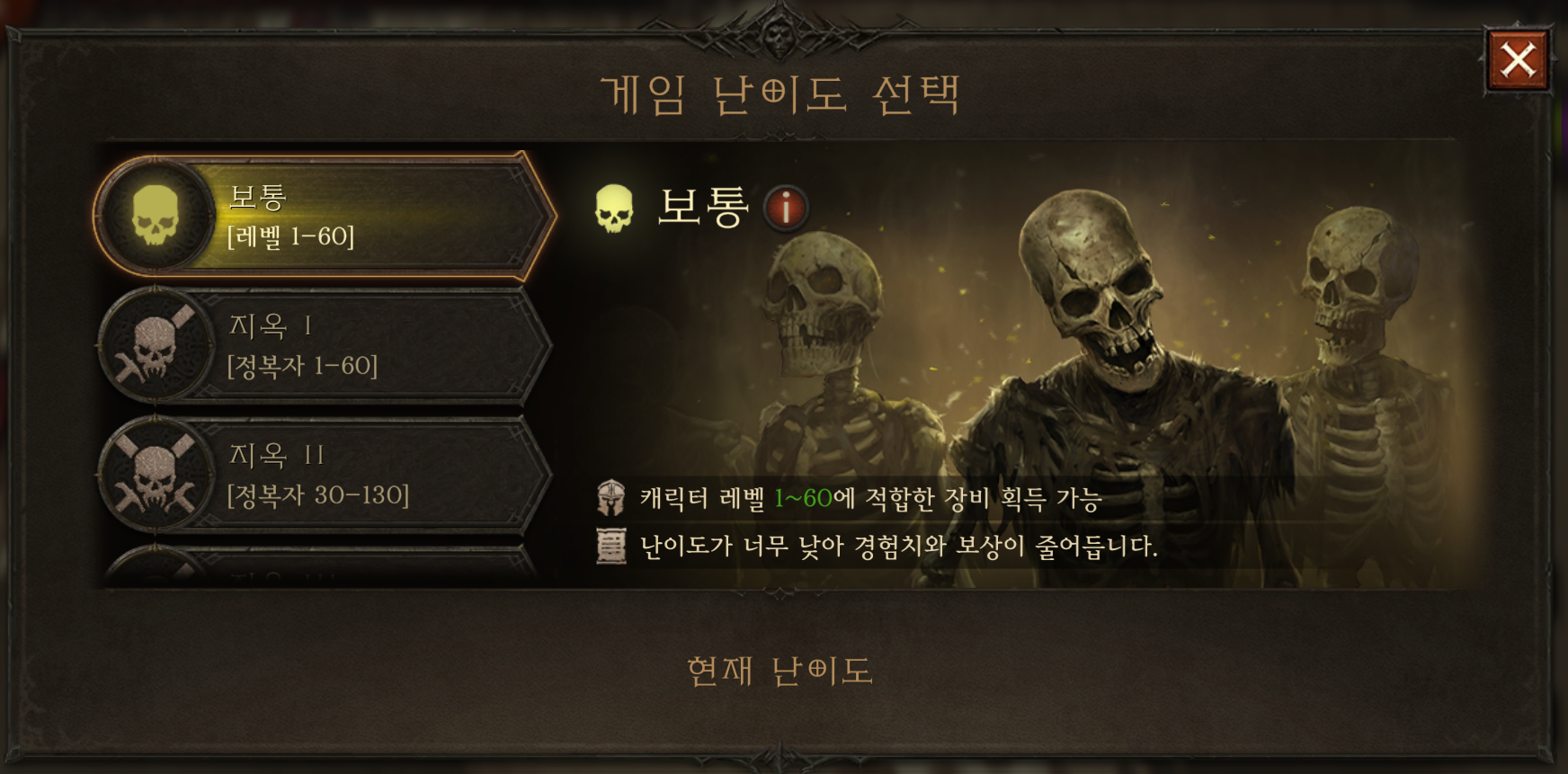 [보통]은 캐릭터 60 레벨 / 이후 지옥 1로 이동하자
