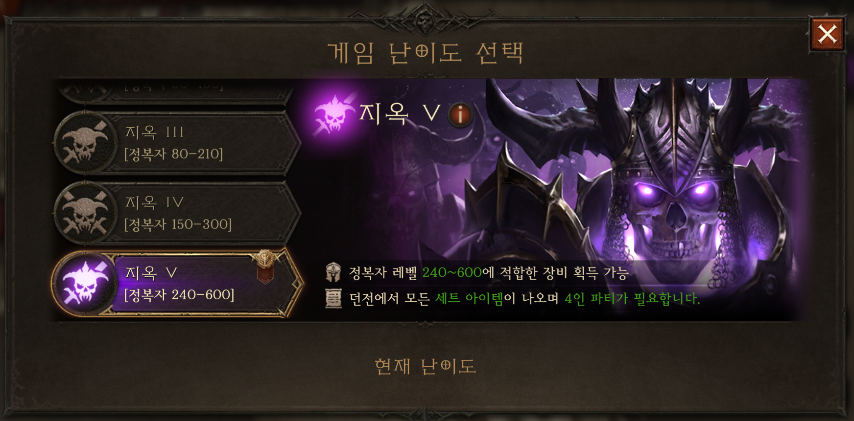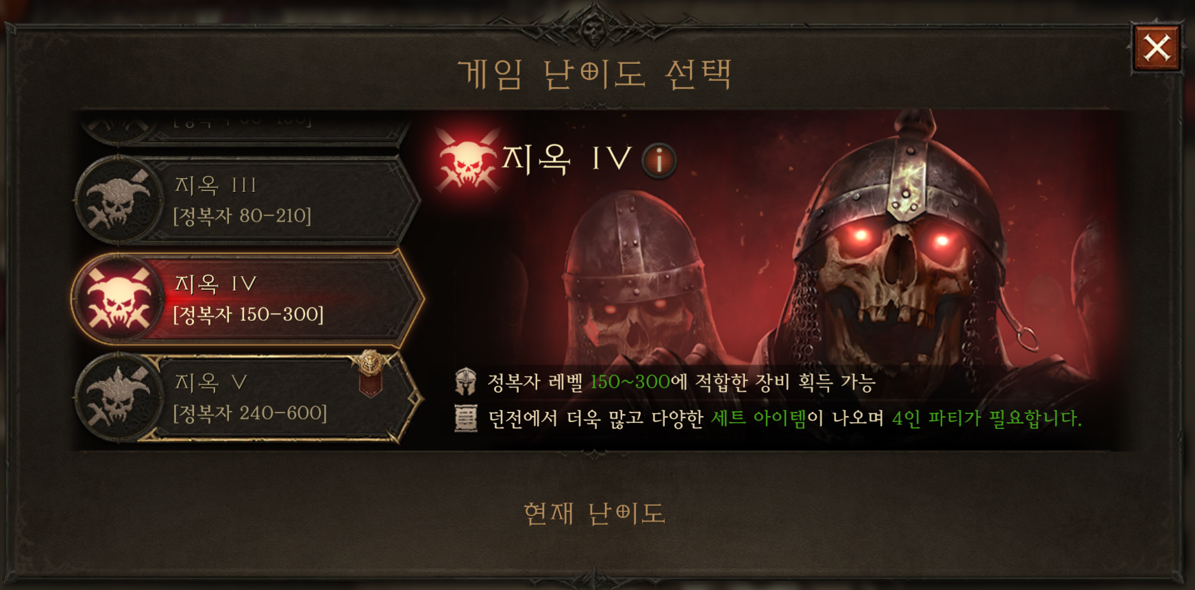 [지옥 4]는 정복자 150 레벨 / 지역 전투평점 3250 기준이다
