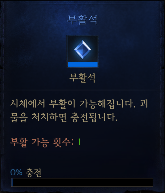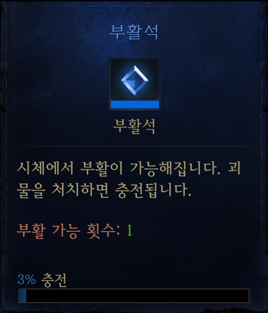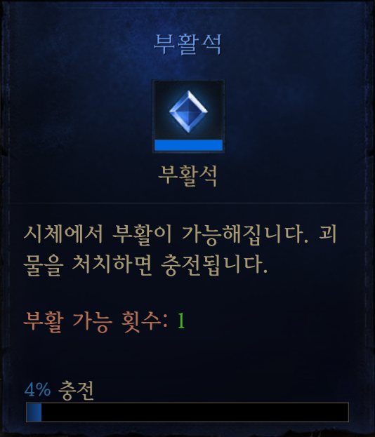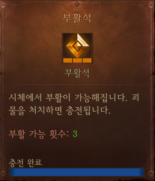 부활석 충전은 괴물을 처치하면 충전 되는데